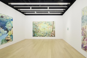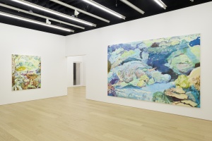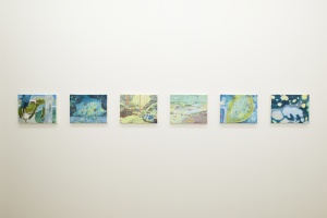 海や大地、自然の根源的なエネルギーを、青、ピンク、グリーン、茶色等の透明感ある色彩により鮮やかに表現する柏原由佳。作品には人間も動物も登場しませんが、作家独自の視点を通すと気配や空気、光といった見えない何かの生命力が映し出されているようで、異次元を垣間見たような不思議なパワーとざわめきを感じます。