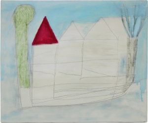 • three roofs 2012 acrylic and pencil on canvas 38.5 × 46.0 cm ©Hiroshi Sugito