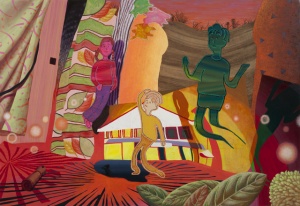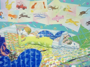 穏やかに臭う Smelling mildly 2011 oil, acrylic, color pastel, crayon on canvas 137.5 × 200.0 cm ©Aya Ito -