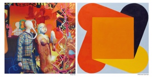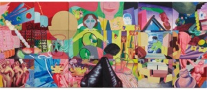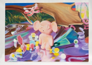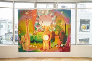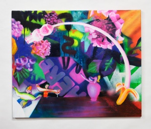 Where is banana? 2021 spray and oil on canvas 227.3 x 363.6 cm (a set of 2 pieces) ©Aya Ito -