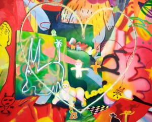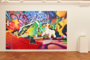 SWING INTO APE LOVE 2021 spray and oil on canvas 181.8 x 227.3 cm ©Aya Ito -