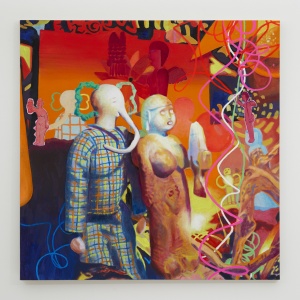 ELEPHANT MAN WITH FISHER ANGEL 2019 oil on linen 100.1 × 100.3 cm ©Aya Ito -