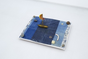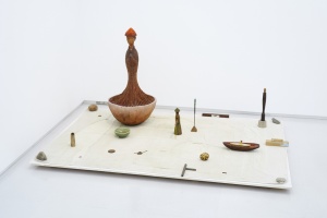 Garden of Hot Springs 2024 h.90.7 x w.40.0 x d.33.0 cm wood, oil paint, stones, glass, ceramic, strings, metal fittings ©Keisuke Yamamoto -
