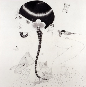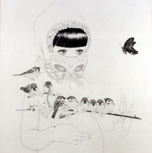 かわいいつばめ Sweet Swallow 2007 pencil on paper 57.4 × 57.4 cm ©Masako Ando -