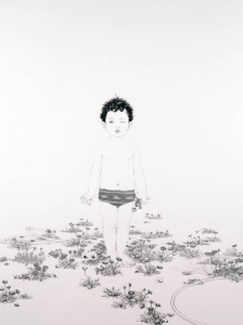 Her major solo exhibitions include “Hara Documents 9: Masako-Ando – The Garden of Belly Button”(Hara Museum of Contemporary Art, Tokyo, 2012), “Masako Ando ’Songbook’ Commemorating the release of her first art book” (8/ ART GALLERY/ Tomio Koyama Gallery, Tokyo, 2016). Working with motifs such as young children, woolen knitted items, animals, plants and flowers, Ando creates paintings with eloquently smooth surfaces that take advantage of the characteristics of oil paint, and are conceived through various pictorial elements such as detailed depiction and her composition of the picture plane that incorporates the presence of large blank spaces. In contrast, while engaging with the same subject matter, her pencil drawings distinct for their meticulously elaborate execution, illustrate a much harder and solid texture.