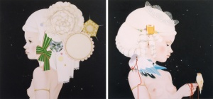 Princess Diamond, Princess Topaz 2000 oil on canvas mounted on wood panel diptych (118.0 × 120.0 cm each) ©Masako Ando