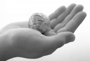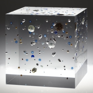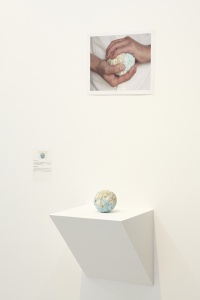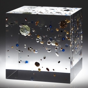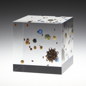 Beans Cosmos 2013 Acrylic resin, map, plastic, beans, gold, nuts h.10.0 × w.10.0 × d.10.0 cm ©Satoshi Hirose -