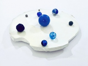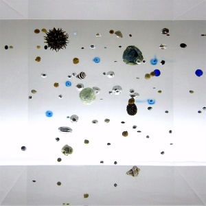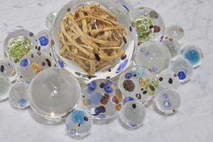 Beans Cosmos 2015 Legume, pasta, gold, acrylic resin, marble, map, plastic, fruit of sweet gum, metasequoia h.25.0 × w.25.0 × d.25.0 cm ©Satoshi Hirose -