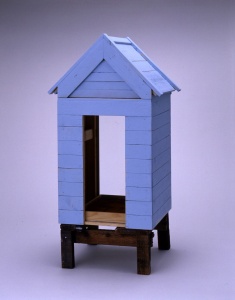 Casa del peper oncino rosso/ azzuro (red pepper house/ bule) 2004 wood, glass, aluminum, red pepper and paint h.33.0 × w.39.5 × d.80.0 cm ©Satoshi Hirose -