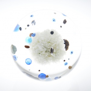 Beans Cosmos 2017 Acrylic resin, wisteria, beans, gold, diamond Φ18.0 cm ©Satoshi Hirose -