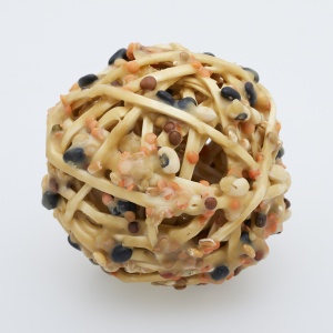 Beans Cosmos (Beeswax) 2019 Rattan, bean, beeswax h.10.0 x w.10.0 x d. 10.0 cm ©Satoshi Hirose -