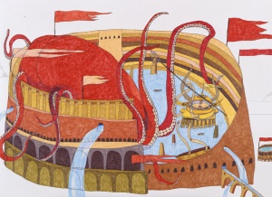Colosseo, Kraken vs Warrior 2003 color pencil on paper 91.0 × 121.0 cm ©Shintaro Miyake -