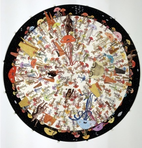 The Fourth Planet 2004 acrylic, color pencil, pencil, glitter and collage on paper φ110.5 cm ©Shintaro Miyake -