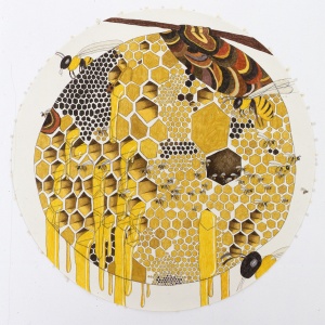 HONEY-BEE (diptych) 2005 color pencil and pencil on paper φ106.0 cm ©Shintaro Miyake -