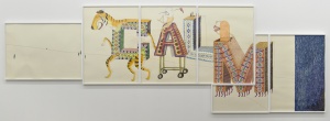 Cavalry 2005 acrylic, color pencil and pencil on cardboard mounted on wood h.292.0 × w.210.0 × d.1.2 cm ©Shintaro Miyake -