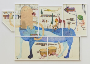 This way pleeease 2011 acrylic, color pencil, pencil on paper 158.0 × 438.0 cm (8pieces) ©Shintaro Miyake -