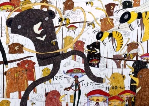 Oh! It's Bear!! It's Bee!! 2005 color pencil and pencil on paper 79.0 × 109.0 cm ©Shintaro Miyake -