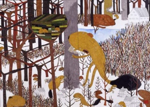 The beaver gnaws the tree 2006 water color and color pencil on paper 79.0 × 109.0 cm ©Shintaro Miyake -