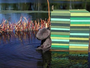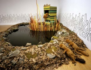 Performance "A Beaver's Life 'Beaver no Seikatsu'" from the exhibition at Sandra and David Bakalar Gallery, Massachusetts College of Art, Boston, MA, USA, 2006 ©Shintaro Miyake -