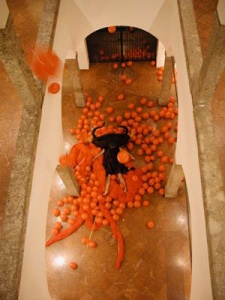 Performance "Minotauro VS Kraken" from the exhibition "The Japanese Experience-Inevitable" at Museum der Moderne Salzburg, Austria, 2004 ©Shintaro Miyake -