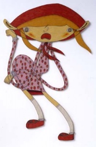 ASHIGARU 2005 acrylic, color pencil and pencil on cardboard mounted on wood h.78.0 × w.31.5 × d.0.5 cm ©Shintaro Miyake -