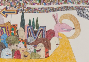 However it's a.k.a. How stupid 2011 acrylic, color pencil, pencil on paper 109.5 × 176.5 cm ©Shintaro Miyake -