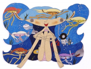 蛸漁 Octupus Fishing 2006 pencil and colour pencil on paper 109.0 × 79.0 cm ©Shintaro Miyake -