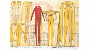 From drawing, painting, sculpture, to “cut-outs” of characters drawn on cardboard or wood, live drawings created while wearing originally-designed costumes, as well as performance, and video, Miyake freely incorporates and combines a wide variety of expressions to create a unique artistic world that is permeated by a rich sense of wit. The diverse and pleasantly humorous nature of his oeuvre has continued to fascinate and attract the attention of viewers internationally. Miyake has held solo exhibitions in numerous locations throughout the world including Italy, Austria, Berlin, and Taiwan