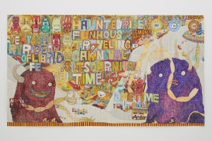 Traveling Carnival 2019 acrylic, color pencil, pencil on paper with frame 115.5 × 204.3 cm ©Shintaro Miyake -