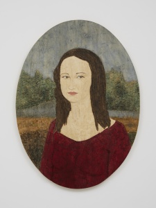 • Frau mit rotem Hemd (Woman in Red Shirt: Landscape) 赤いシャツの女(風景) 2019 Relief made of Wawa-Wood Fumigated with expertise Painted & colored h.127.0 × w.93.5 × d.4.5 cm ©Stephan Balkenhol