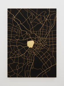 • Stephan Balkenhol Townmap Tokyo / 東京市街図 2025 relief made of Wawa-wood, gold leaf, painted & colored h.140.0 x w.100.0 x d.4.5 cm ©︎ Stephan Balkenhol
