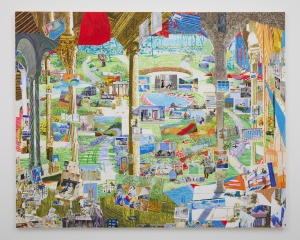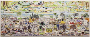 Drawing: Pierre Bonnard’s Studio - June with LP Record Music by Riki Eric Hidaka: 1.Music for Pierre Bonnard, June and Toru Kuwakubo 2019 image: 109.3 x 79.0 cm / frame: 155.5 x 88.2 x 6.3 cm oil, enamel pen, permanent marker, charcoal on paper ©︎Toru Kuwakubo -