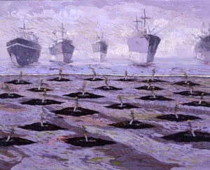 冬の海と霊園 Winter Sea and Graveyard, 2008 oil on canvas, 181.8 x 227.3 cm, © Toru Kuwakubo -