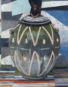 緑の女と縞の壷 / Woman in Green on Striped Pot, 2009 oil on canvas, 91.0 x 72.7 cm, ©Toru Kuwakubo -
