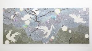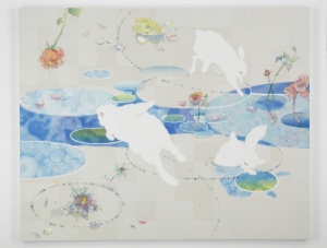 • 泳ぐ雲 Swimming Clouds 2011 water color, lithograph ink, pencil, Japanese paper on canvas mounted on wood panel 120.5 × 150.0 cm ©Yuko Someya
