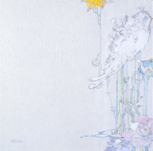 • リッカの季節 −トリ− The Season of Rikka -Bird- 2007 pencil, lithograph ink, water color on Japanese paper mounted on canvas 60.5 × 50.3 cm ©Yuko Someya