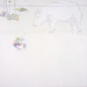 • リッカの季節 −ブタ− The Season of Rikka -Pig- 2007 pencil, lithograph ink, water color on Japanese paper mounted on canvas 91.0 × 91.0 cm ©Yuko Someya