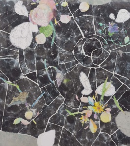 • 蜘蛛の庭 The Garden of Spiders 2011 water color, lithograph ink, Chinese ink, pencil, Japanese paper on canvas mounted on wood panel 90.5 × 80.5 cm ©Yuko Someya
