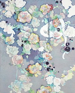 Yuko Someya was born in 1980 in Chiba. She completed her Master’s degree in printmaking at Tokyo University of Arts, the Department of Art, in 2006. She received awards for her work at Machida City Museum of Graphic Arts, Tokyo in 2004 and her works are now part of the museum collection. “I move my pencil as if I was spelling a word,” Someya says of her works, intricately drawing and coloring motifs such as flowers, birds, plants, and animals. The paintings often embrace generous blank spaces in which the motifs are given the sense of floating, releasing strong brightness as if to invite the viewers into the stories, and to continue them. Her specialized method using ink and distinctive transparency in color and texture created by layered washi paper are also attractive.