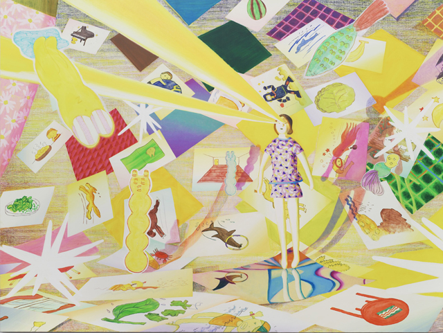 Aya Ito’s works have unique motifs such as zombi, ghost, and ones that are “vulgar, not artistic but childish”. Viewers may be surprised, amused, and imagine that Ito paints them unrestrainedly and spontaneously. Her works, which embrace unusual sense of space, however, are composed through a series of careful process. Ito creates maquette and examines the visual effects by taking many photographs, before she starts painting, and she calls this method “photo-drawing”. Evoking imagination based on daily experiences, she transforms the unexpected things happen in the process into some reality with special density. Her works do not carry stories, and even if they do, the stories do not have certain meanings. Her work’s reality is absurd and unstable yet lively, giving the sensations and seemingly disjointing the conventional views.
