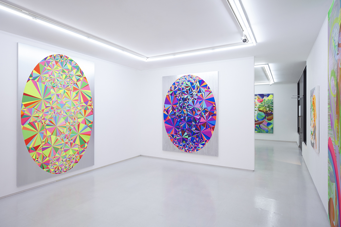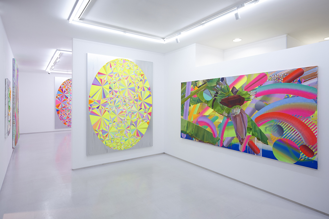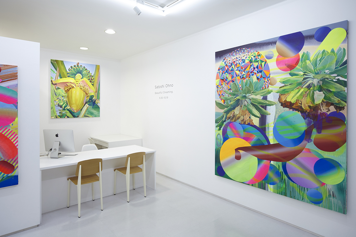 This exhibition forms part Ohno’s previous exhibitions as a series, featuring paintings of prisms, and motifs of subtropical forests. His understanding of Eastern and Western art history, and his explorations of pictorial representation are painted onto flat colored compositions, as if to symbolize the era of digitalization. At the same time, his pictorial representation antagonizes the flat color composition on a canvas surface, layering the senses and ever pursuing the possibilities of painting.