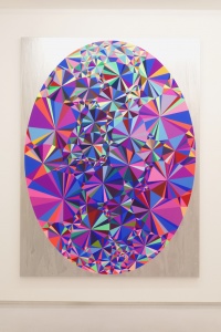 Satoshi Ohno paints images of speakers, figures, prisms, and spirals against backgrounds of primeval forests. With a studio at the foot of Mt.Fuji, Ohno considers primeval forests as places where life begins and ends. Viewers are strongly attracted to his vivid colored prisms, symbols of charm, beauty, and allure. Ohno received a grant from Dimlar Foundation in 2013 which gave him the opportunity to stay in Berlin. During the residency he had the opportunity to observe German Expressionism intensively, which greatly influenced him. On the other hand, he recognized the different pictorial aesthetics that arose from differences of climate between Japan and Europe. His experience of this awareness appeared in paintings shown at “Art Scope 2012-2014: Remains of Their Journeys” at the Hara Museum of Contemporary Art in Tokyo (2014).