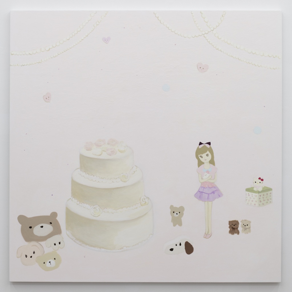 Since the mid-90s, however, Kuwahara’s work has moved away from such a social discourse, and his gaze started focusing on more private and internal aspects. Motifs of flowers, jellyfish, or dolls float in a milky-white plane, where specific temperature, languid warmness are drifting. When he started depicting nameless girls who are consumed on magazines and advertisements, sticky weights seen in his work was replaced by lightness. In his recent bright works, a feeling of desolation is accompanied by idiosyncratic happiness, and the girl figures resemble the Madonna. This exhibition will feature new and recent works produced since his solo show in 2012.
