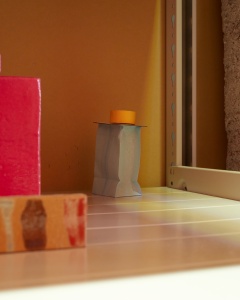 In recent years Sugito has become increasingly interested in architectural spaces and creates “the whole exhibitions as he makes drawings of spaces” (Koichi Wada, “Making Exhibitions According to Space and Painting Are the Evidence of Life”, Bijutsu Techo, July 2015). Although each work has an independent presence, by creating interactions between adjacent works and the spaces around them, composing the space with various materials such as a large lemon-shaped balloon, carpets in light pink or blue, or Styrofoam, and sometimes creating fresh visual effects by reversing the viewers’ exhibition route, Sugito creates multilayered, organic worldviews that can only be experienced in exhibition spaces. Especially for Sugito, the encounter with architect Jun Aoki has led him to new perspectives and possibilities beyond imagination.