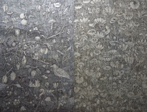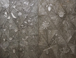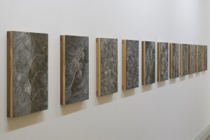“The works have been depicted by melting and scraping away thick layers of paint using a heated pen similar to a soldering iron. When producing paintings I don’t finish simply with one layer as (in often cases) I work with a method of applying multiple layers of paint on top of which I would depict new images.