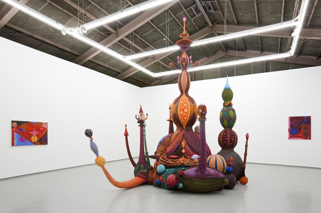 The exhibition features new paintings and a wooden sculpture, some measuring nearly five-meters tall. It will consist of about thirty parts representing faces, plants or mysterious decorative patterns, dazzling the audience with mass looking like a wooden palace. The exhibition title rise relays his thoughts about the creative process;