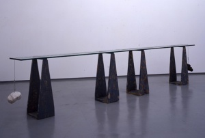 Kishio Suga is one of the artist from “Mono-ha” which is stormed Japanese art movement between the end of 1960s and 1970s. After he learned from Yoshishige Saito at university, he used such as wood, stone, metal fragment, and glass sheet as materials of his artworks, and placed them in the exhibition space. “Thing” and “body”, “thing” and “space”, “center” and “surrounding”- these “thing” he strips away preexisting concepts related the materials.