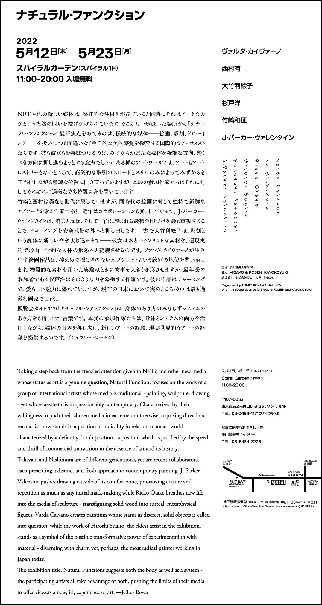 Varda Caivano, Rieko Otake, Hiroshi Sugito / Group Exhibition “Natural Function”