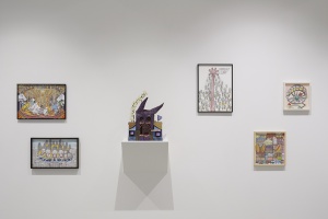 Kenjiro Hosaka, Senior Researcher of The National Museum of Modern Art, Tokyo mentions the influence of Art Brut, Outsider Art, Folk Art, and Australian artist Gugging’s work on Miyake’s practice.