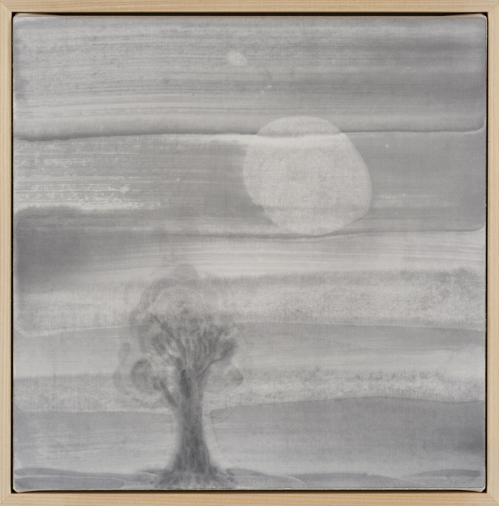 Chinese ink, watercolor and Japanese paper on canvas mounted on wood panel